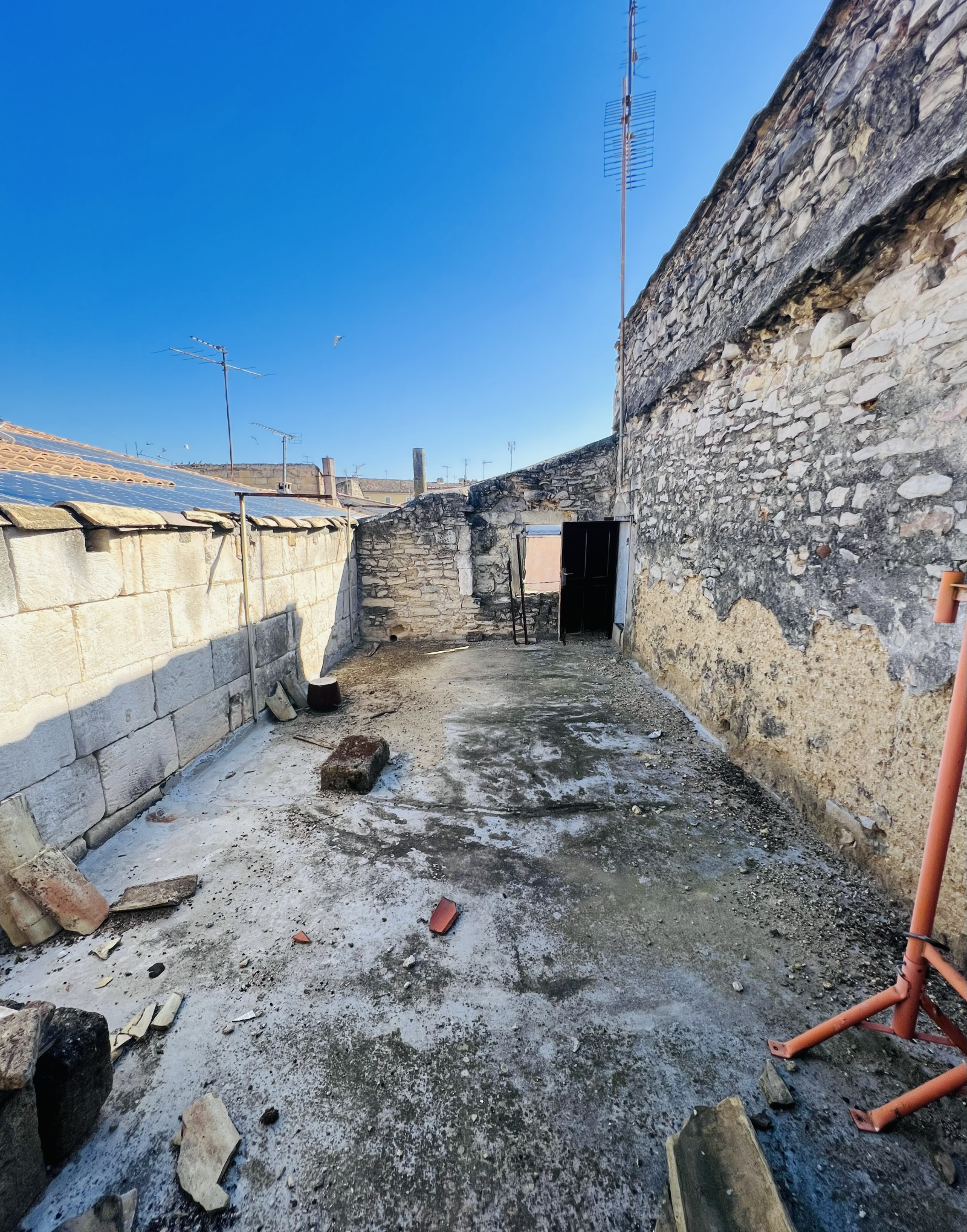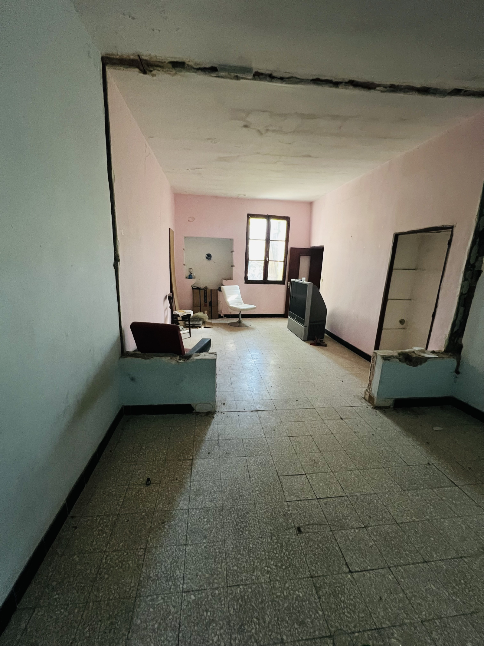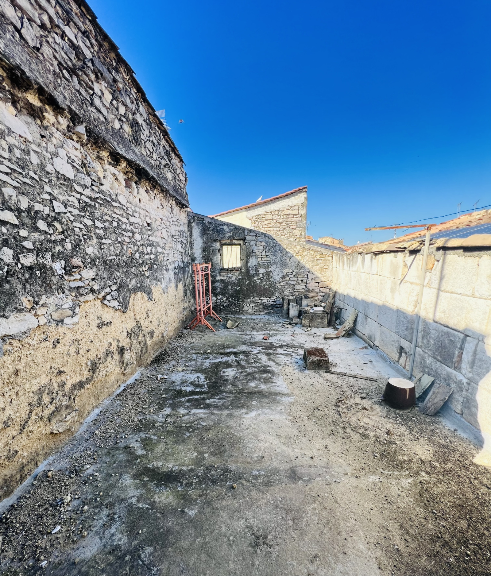 Maison totalement à rénover de A à Z de 82 m² avec cellier, possibilité garage, dépendances au RDC d'environ 60m² et cour de 8m², 1er étage de 52m² avec possibilité salon, chambre, SDB, WC et 2eme étage de 30m² avec possibilité 2 chambres et terrasse d'environ 25m² et terrasse, bel emplacement.