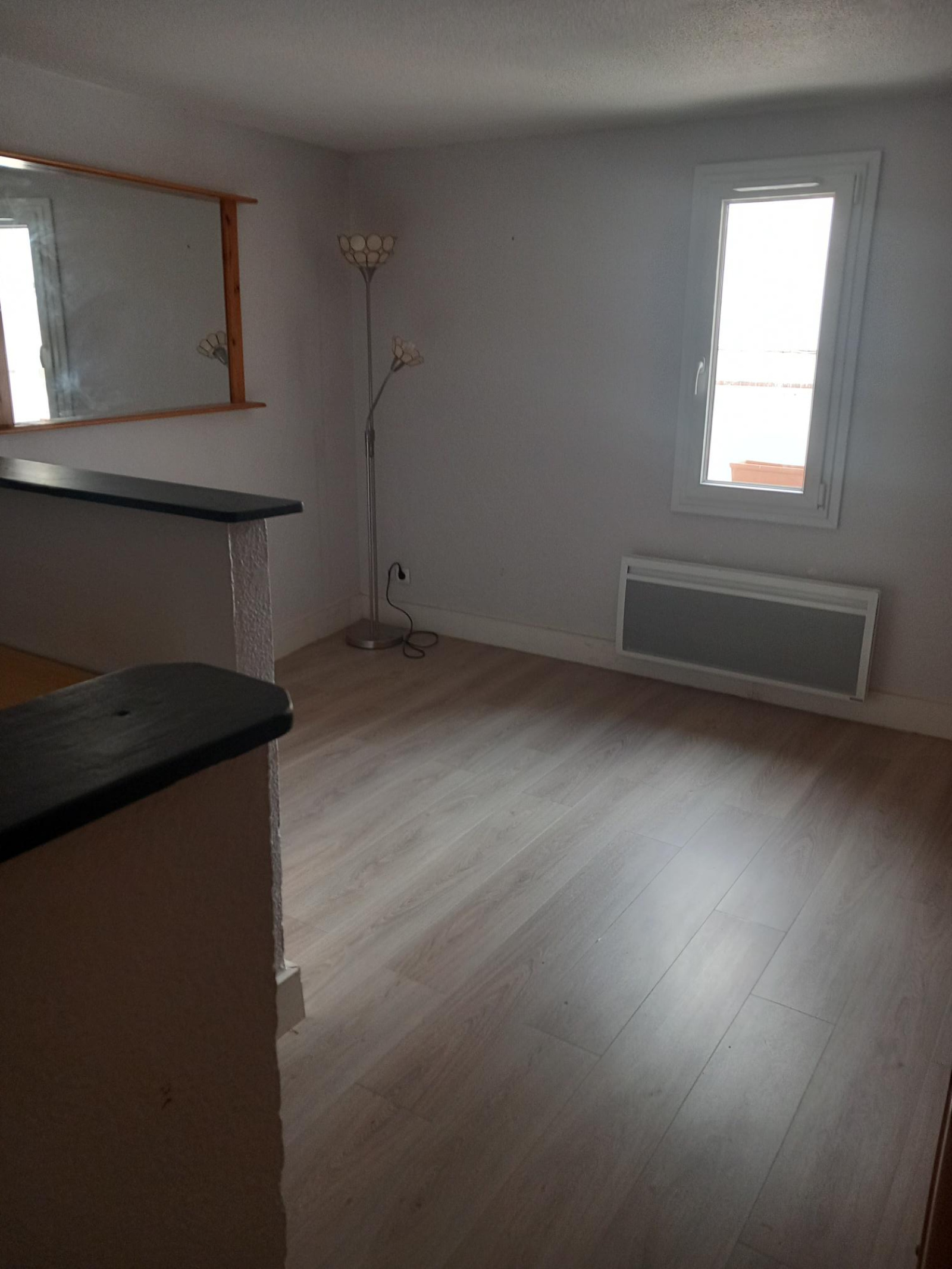 Appartement au 1er étage d'un petit immeuble à 2 mn de la gare et du centre ville. Séjour cuisine ouverte de 19.55 m² - Chambre avec balcon et salle d'eau refaite avec WC. Cave