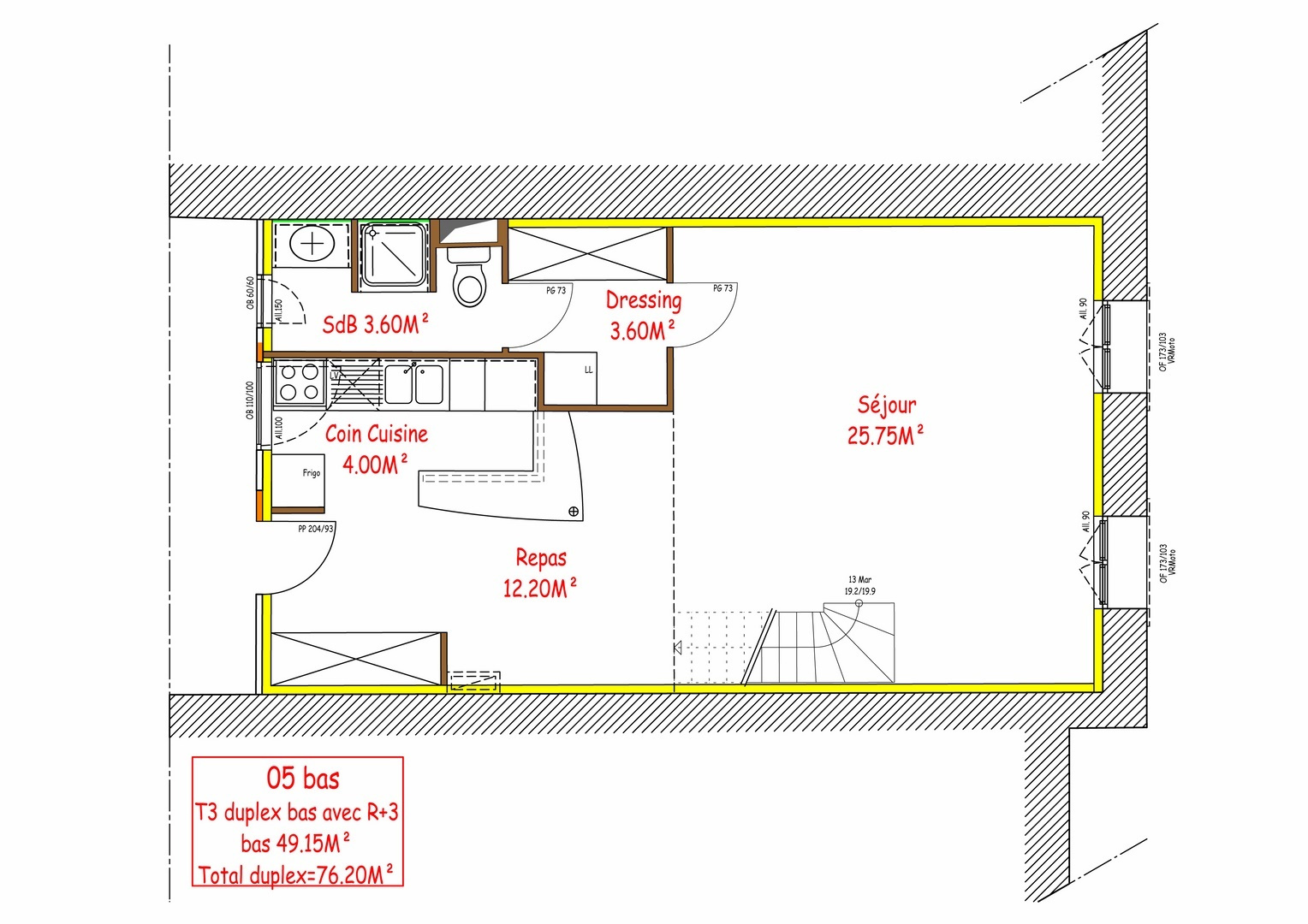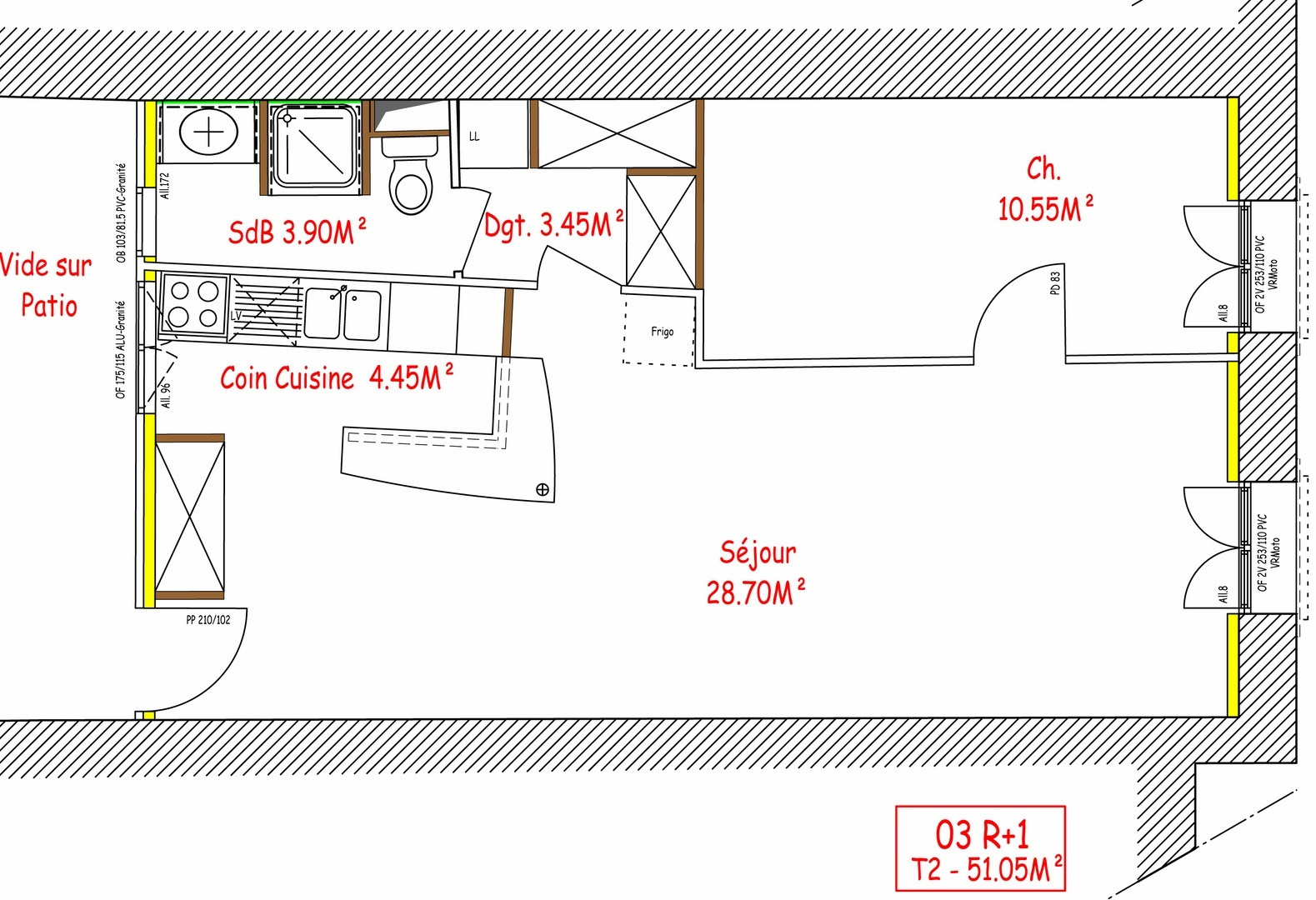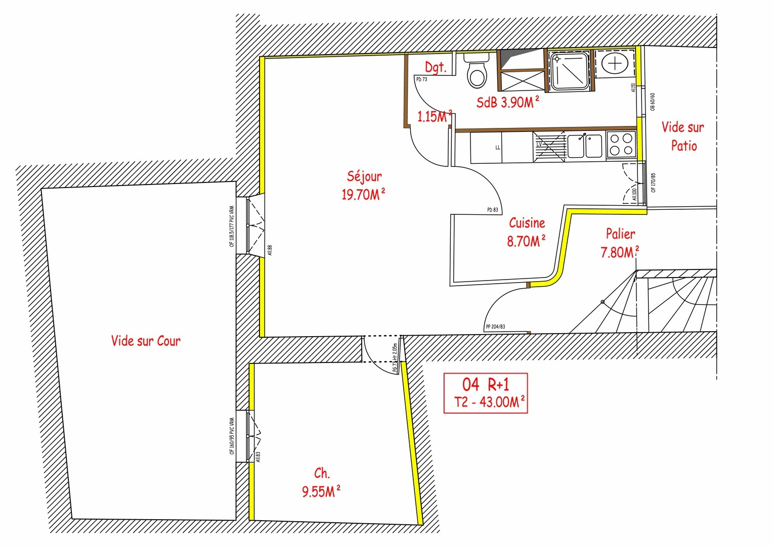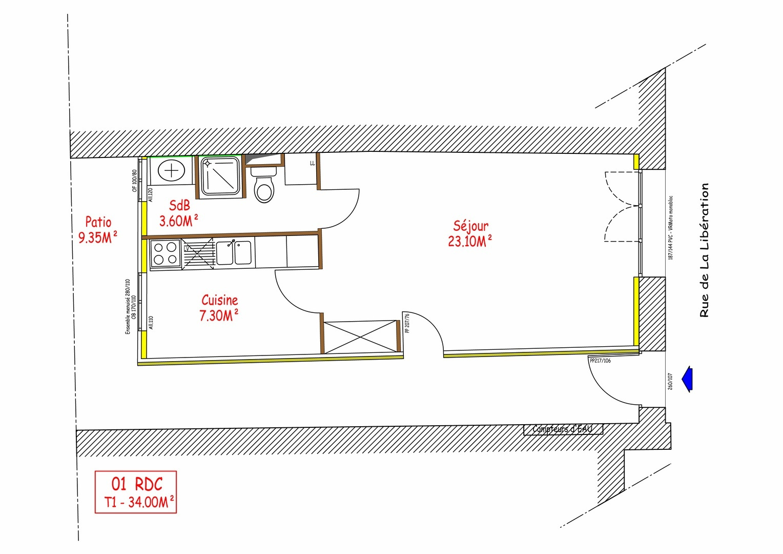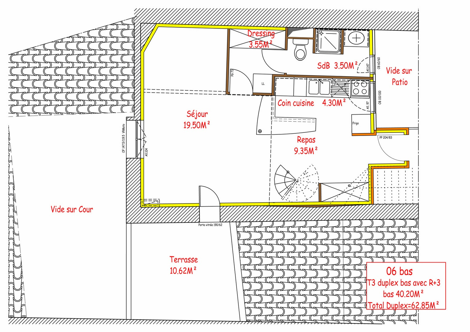 Superficie totale de 342.50m², superficie des logements de 307.90m² et superficie des parties communes de 34.60m²